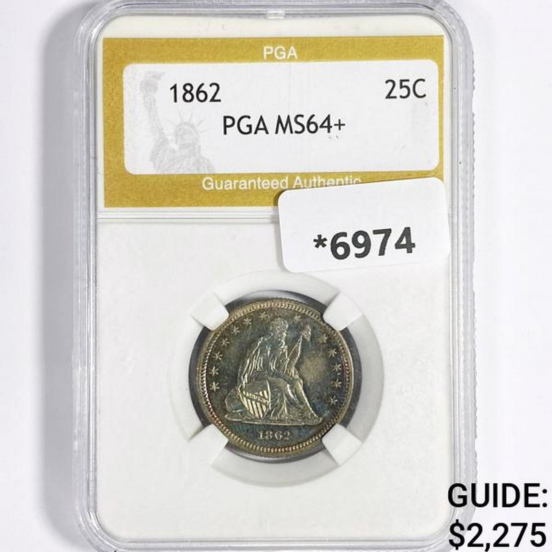 1862 Seated Liberty Quarter PGA-MS64+