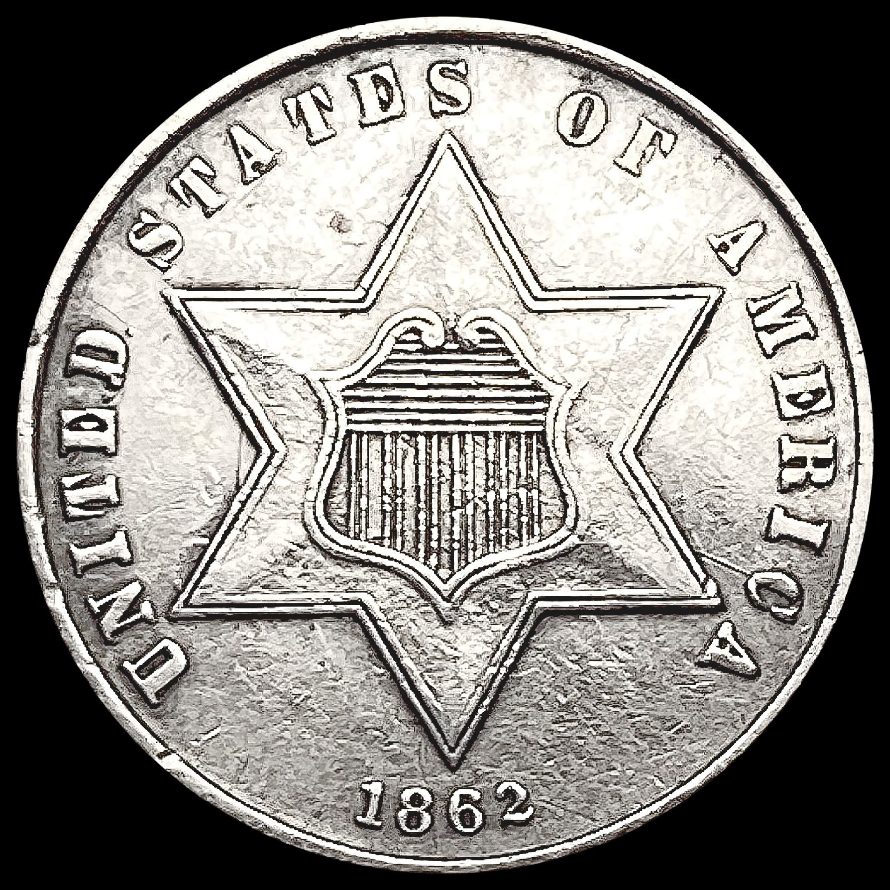1862 Silver Three Cent CLOSELY UNCIRCULATED
