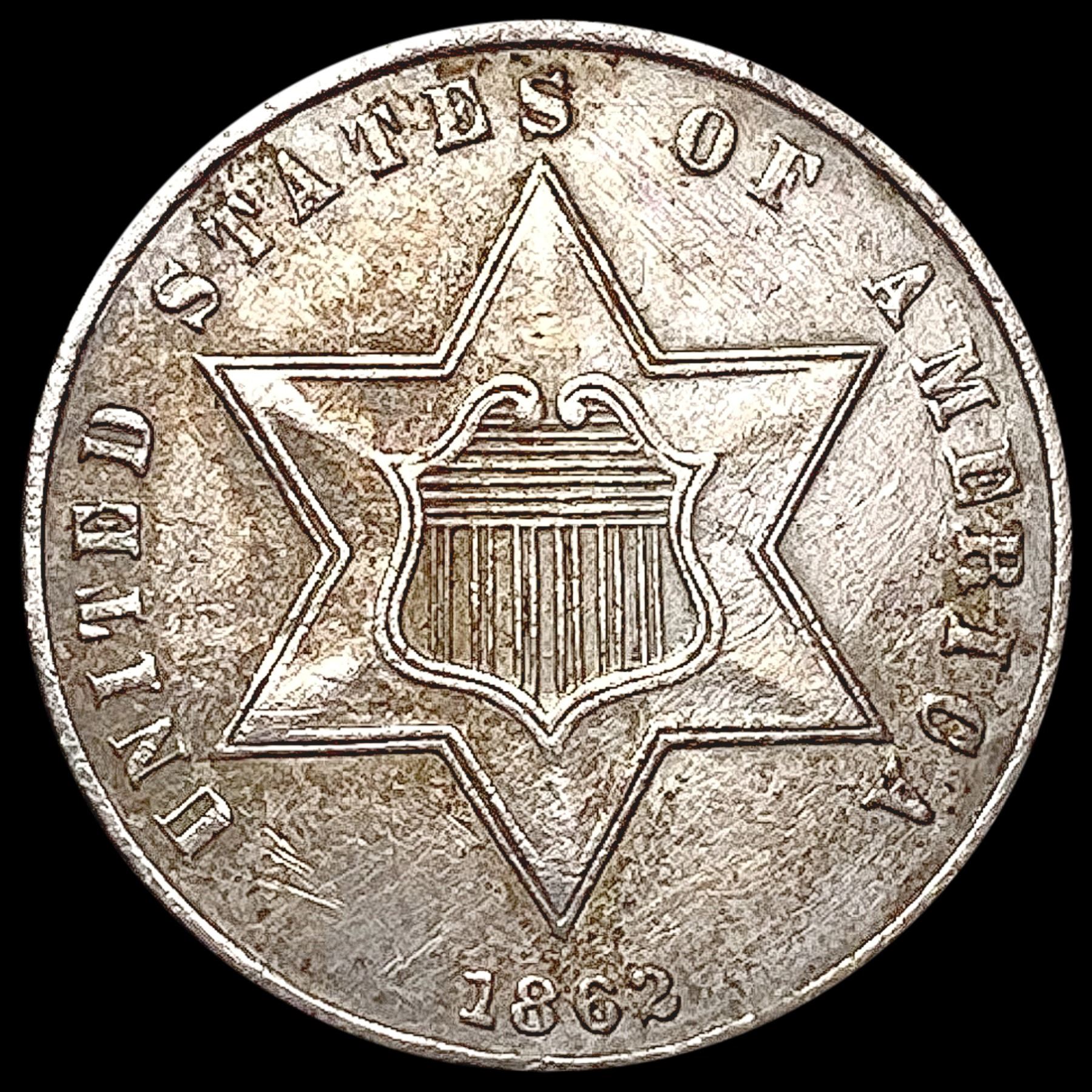 1862 Silver Three Cent CLOSELY UNCIRCULATED