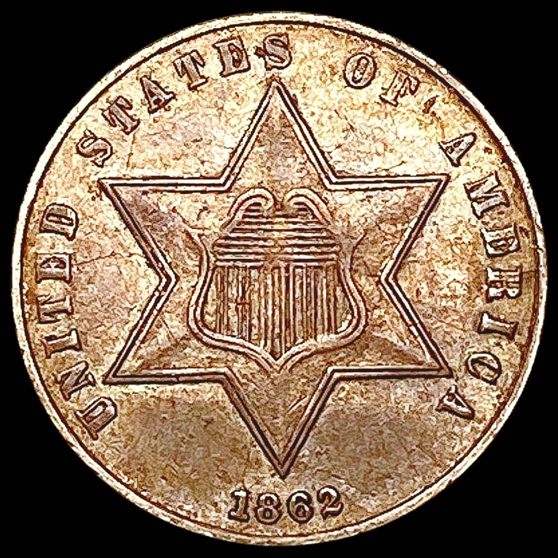 1862 Silver Three Cent CLOSELY UNCIRCULATED