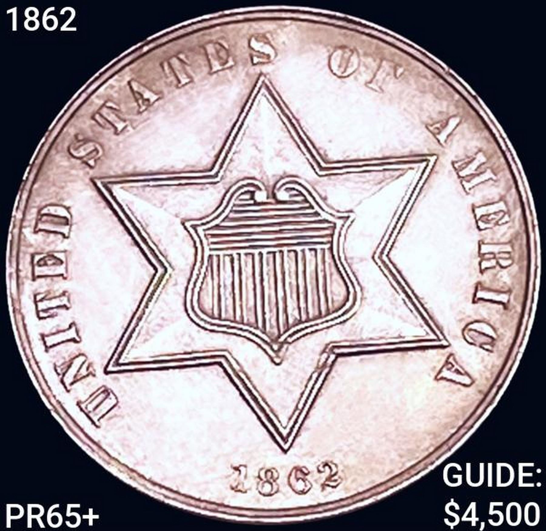 1862 Silver Three Cent GEM PROOF +
