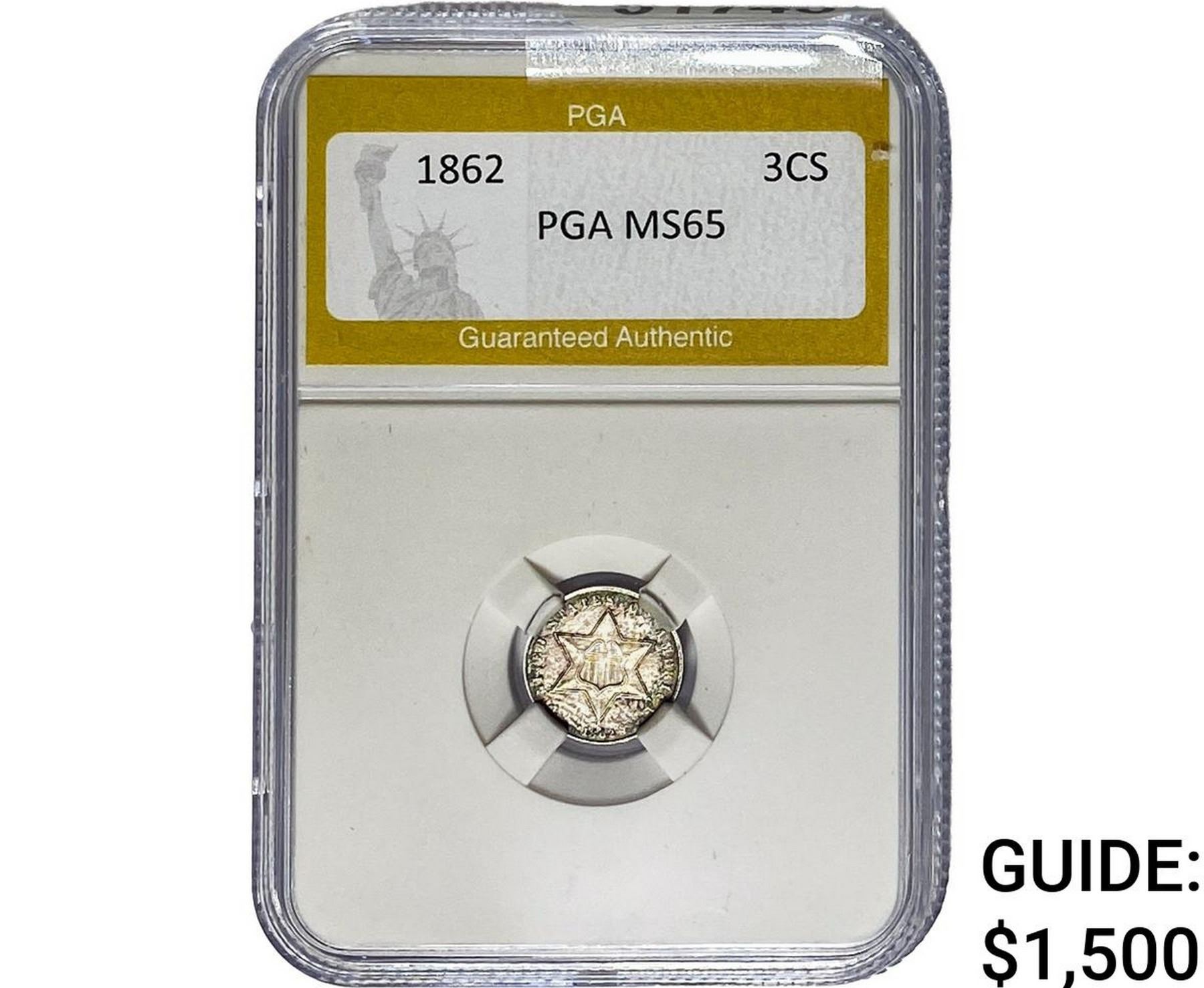 1862 Silver Three Cent PGA MS65