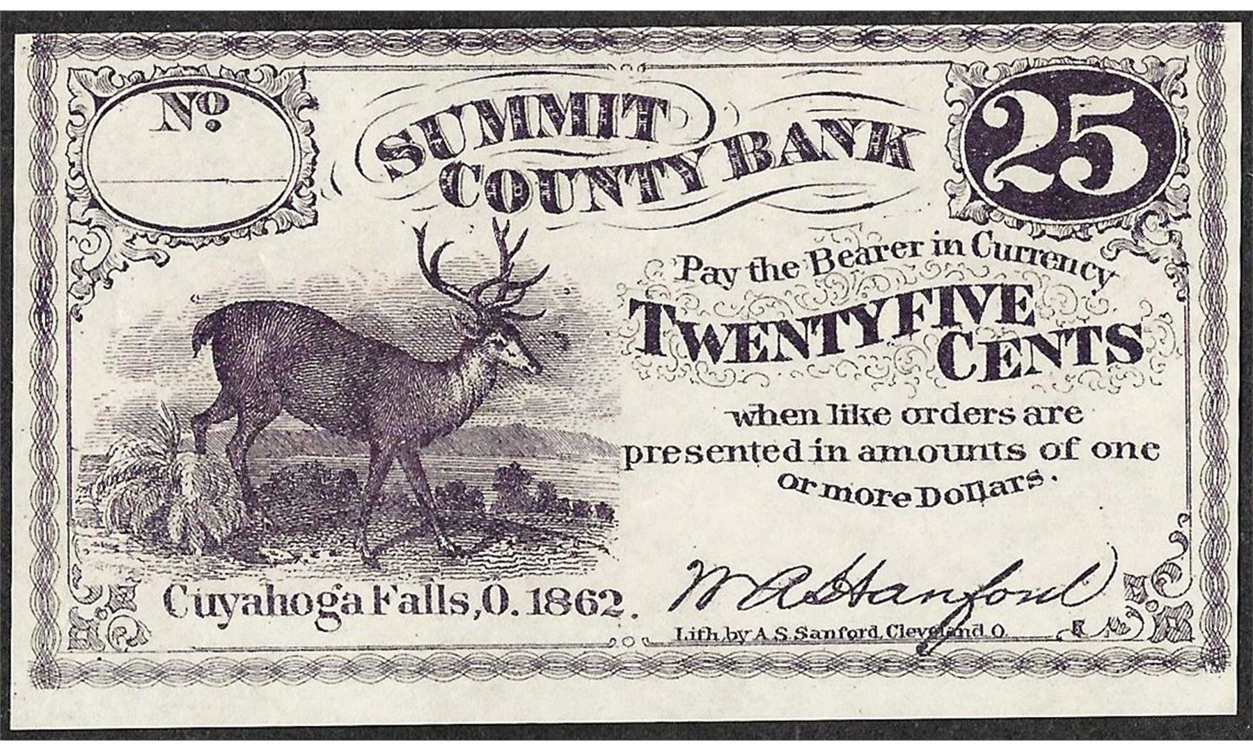 One 1862 Summit County Bank Twenty-Five Cents Obsolete Note.