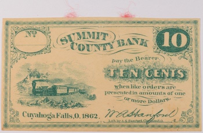 1862 TEN CENT SUMMIT COUNTY BANK CUYAHOGA FALLS, OH