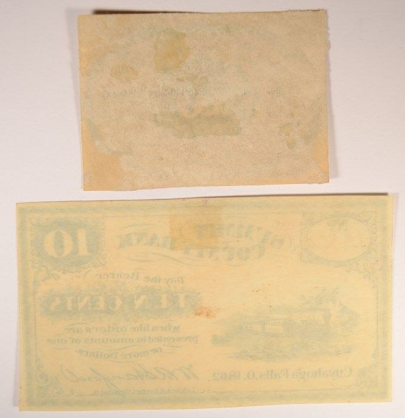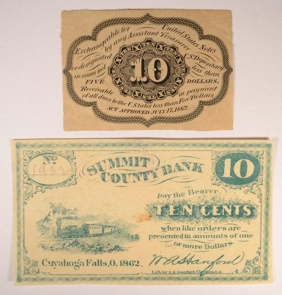 1862 TEN CENT US NOTE & 1862 TEN CENT SUMMIT BANK NOTE CUYAHOGA FALLS, OH