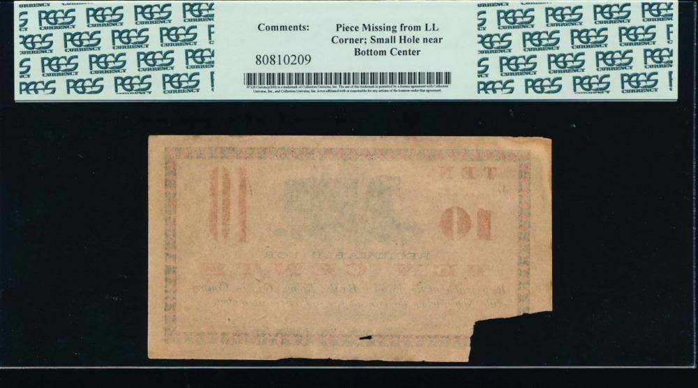 One 1862 Ten Cent Empire Bank Note PCGS 50.