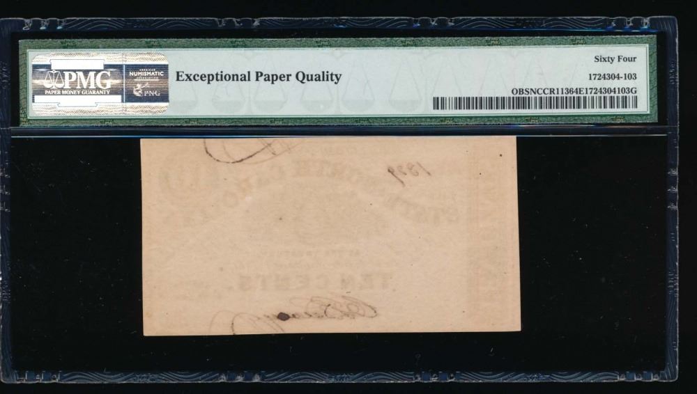 One 1862 Ten Cent Raleigh NC Obsolete Note PMG 64EPQ.