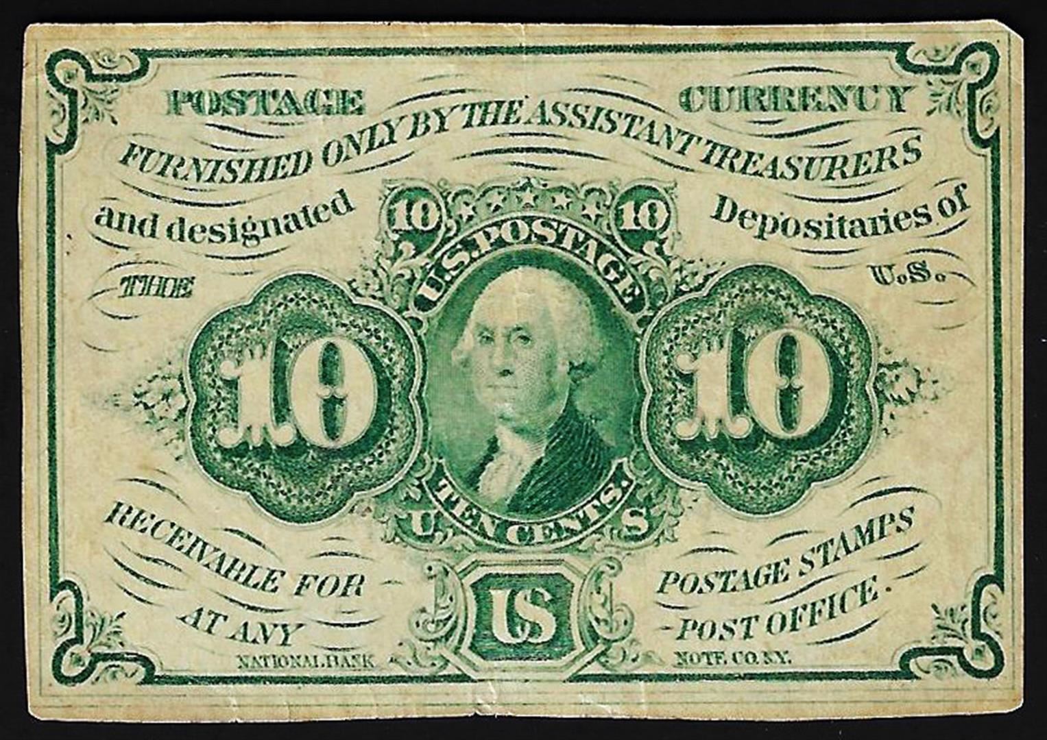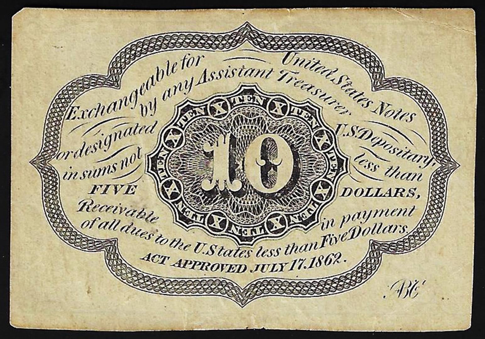 One 1862 Ten Cents First Issue Fractional Note Straight Edges.