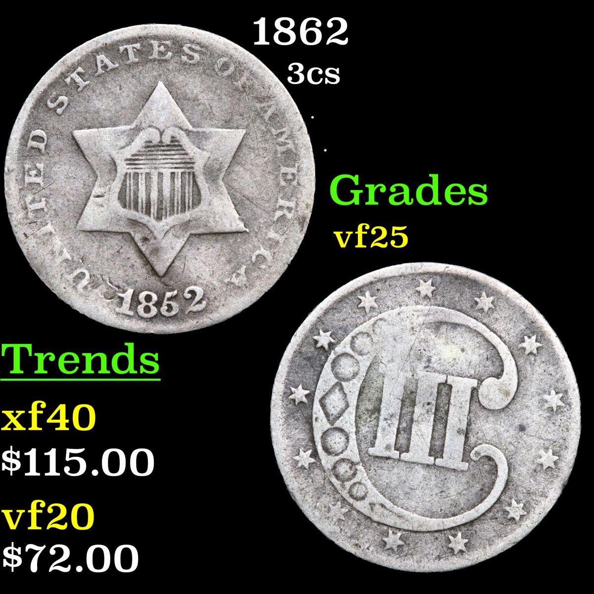 1862 . . Three Cent Silver 3cs Grades vf+.