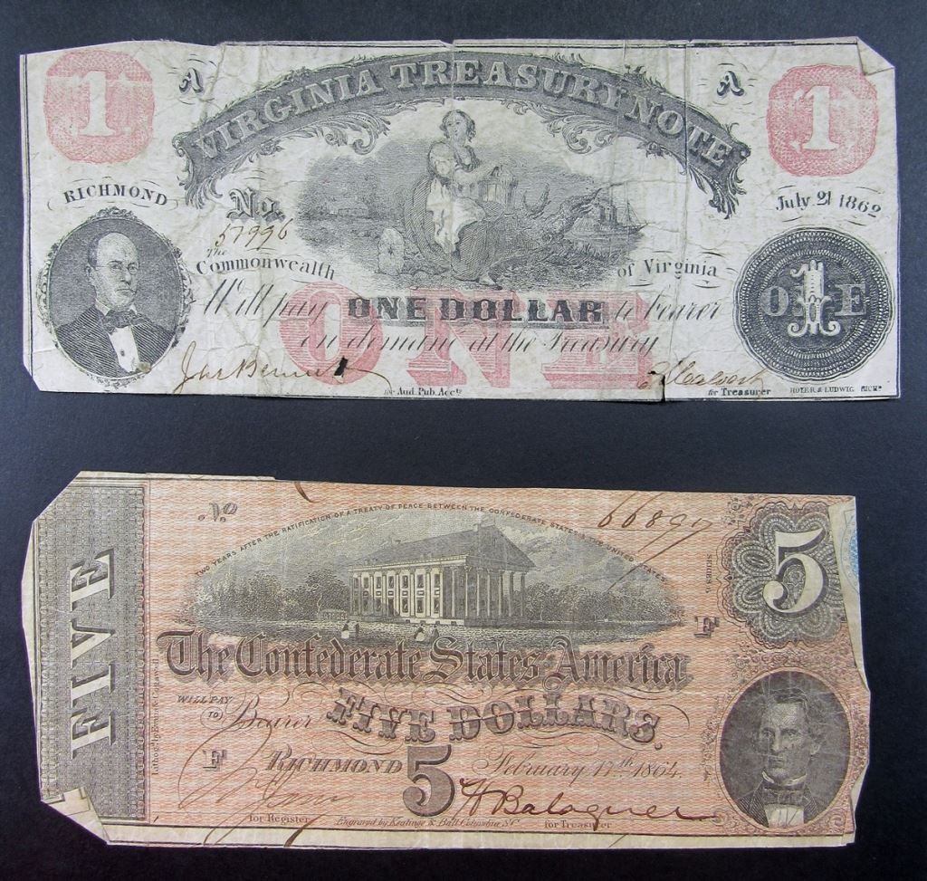 $5 CONFEDERATE STATES OF AMERICA (2 NOTES TOTAL)