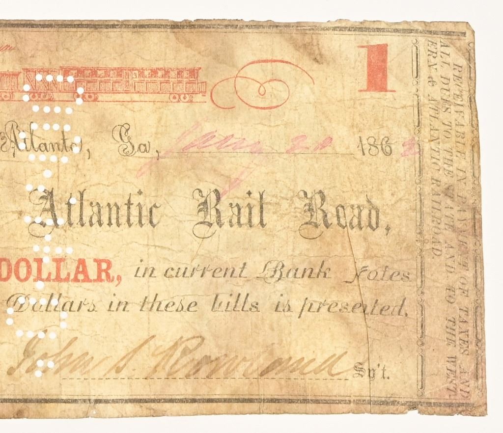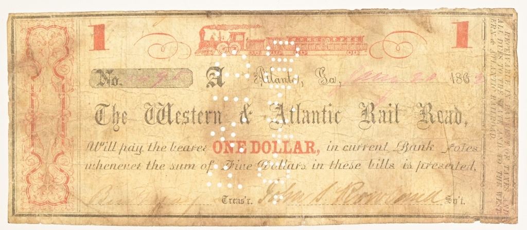 1862 Western & Atlantic Railroad $1 Note