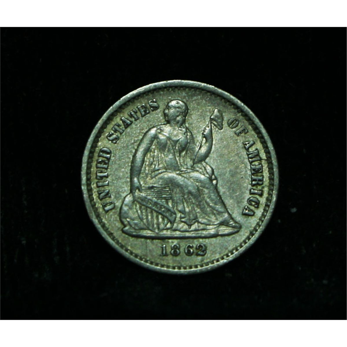 A very nice All Original Seated Liberty Half Dime. Great year, Great Strike, and All Original, never played with or cleaned. The Wholesale Greysheet lists ms60 at $135 and ms63 at $215. Estimated Value $200