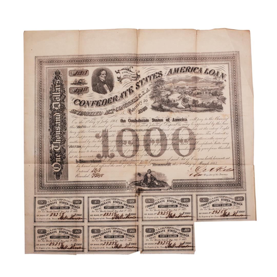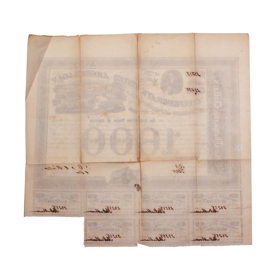 One 1863 $1,000 Confederate Bond Obsolete Sheet B-134.