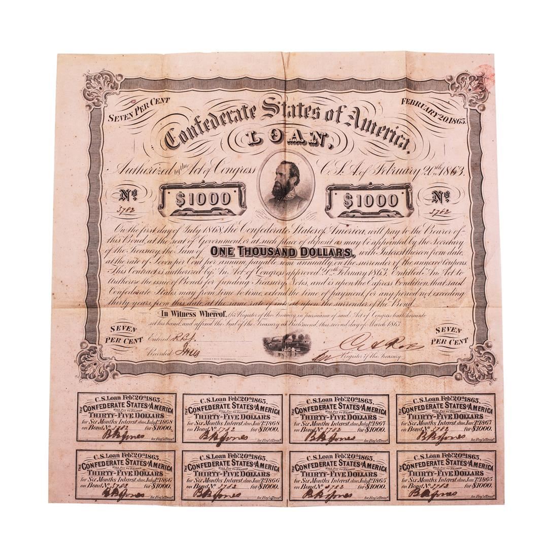 One 1863 $1,000 Confederate Bond Obsolete Sheet Printed on Dark Pink Paper B-241.