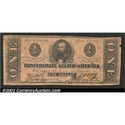 1863 $1 Clement C. Clay, T-62, VF. Some minor damage is present on each side.