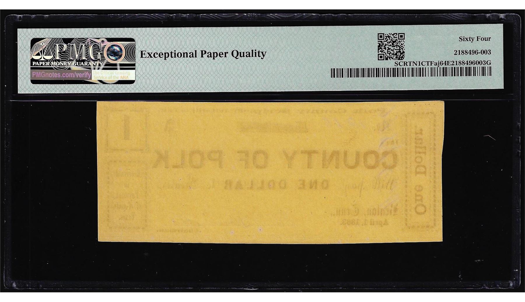 1863 $1 County of Polk Benton, TN Obsolete Scrip Note PMG Choice Uncirculated 64EPQ