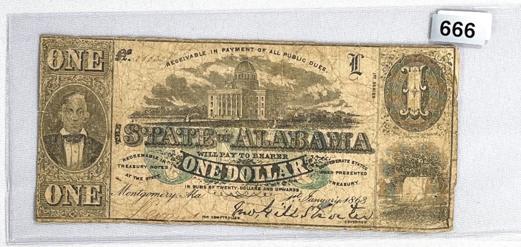 1863 $1 State of Alabama Note