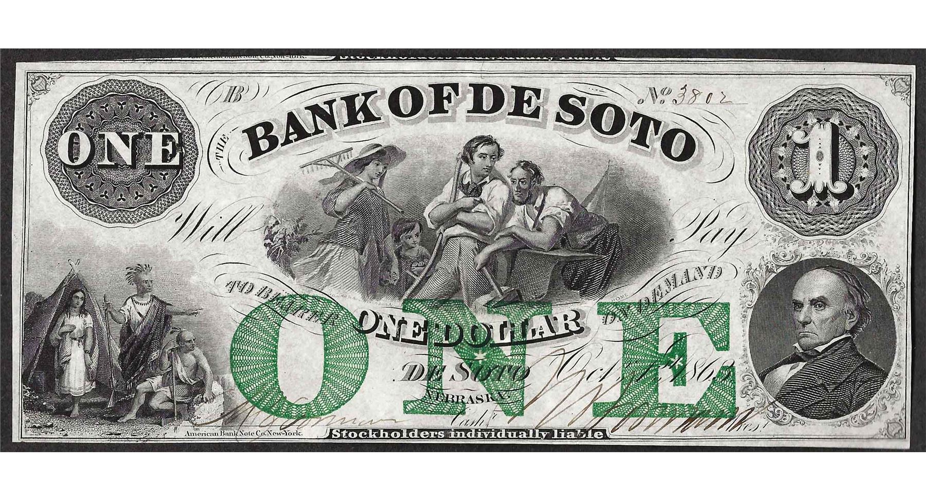 One 1863 $1 The Bank of Soto Obsolete Note.