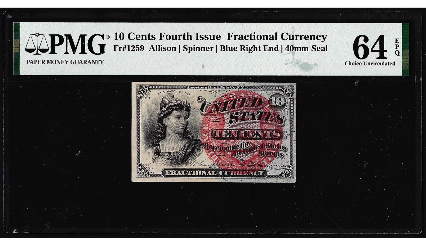 1863 10 Cent Fourth Issue Fractional Currency Note Fr.1259 PMG Ch. Uncirculated 64EPQ