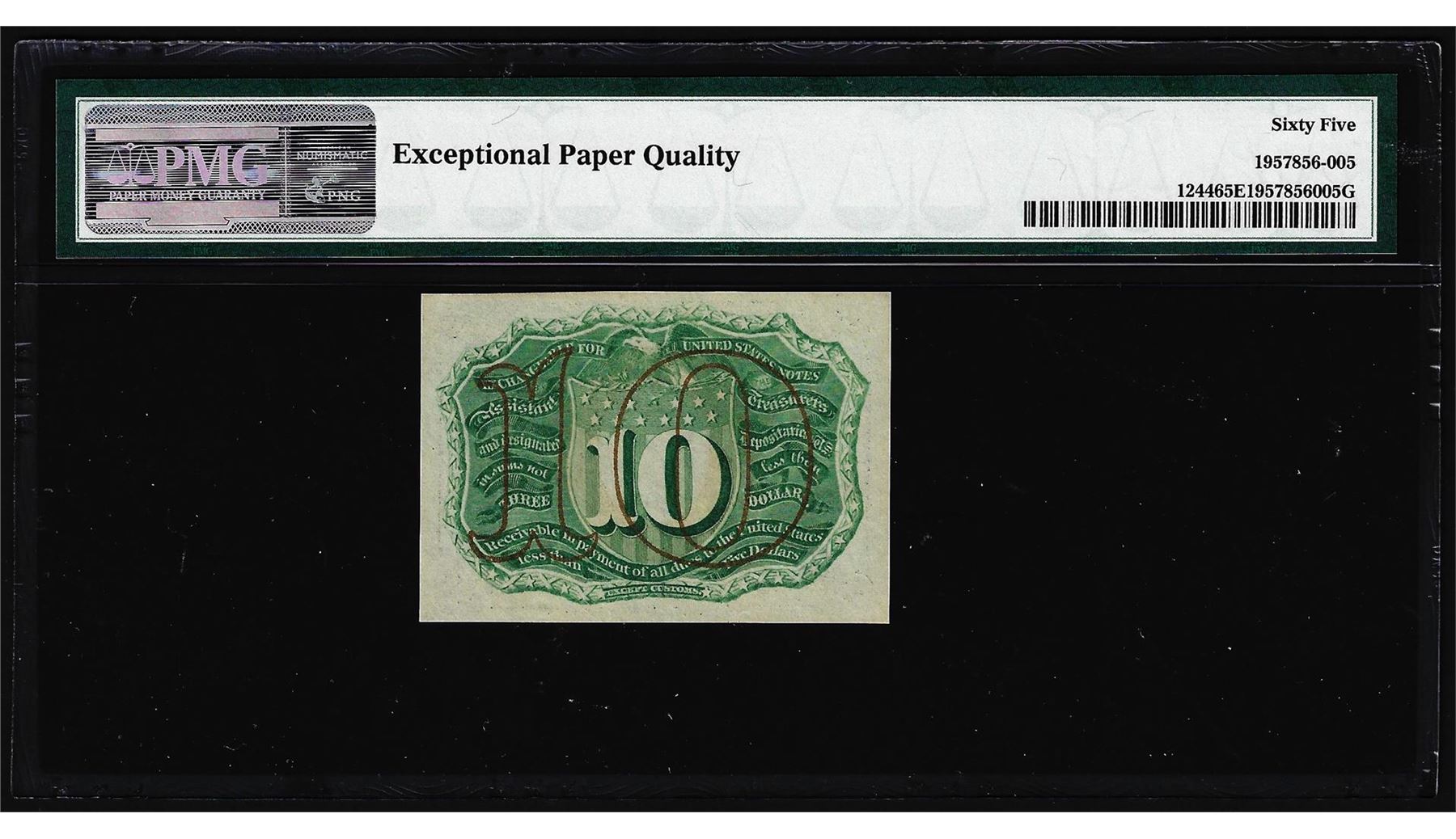 One 1863 10 Cent Second Issue Fractional Currency Note Fr.1244 PMG Ch. Uncirculated 65EPQ. PMG Certified.