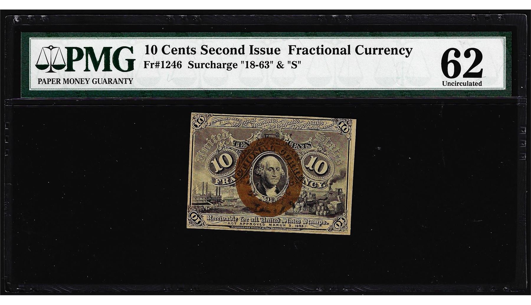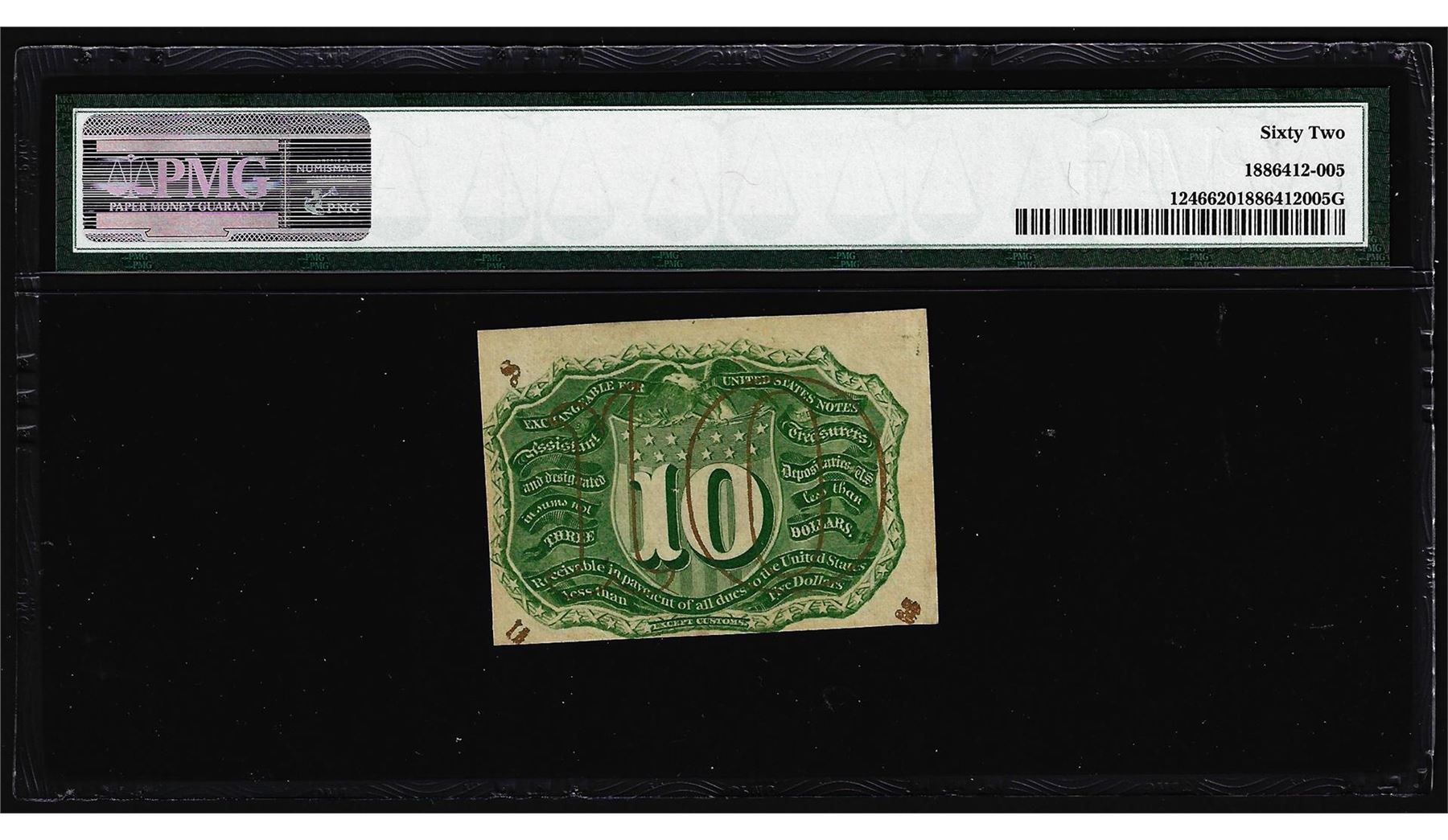 One 1863 10 Cents Second Issue Fractional Currency Note Fr.1246 PMG Uncirculated 62. PMG Certified.
