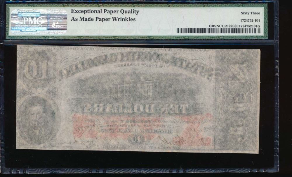 One 1863 $10 North Carolina Obsolete Note PMG 63EPQ.