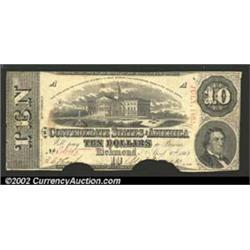 1863 $10 State Capitol at Columbia, SC; R.M.T. Hunter, T-59, VF, COC.