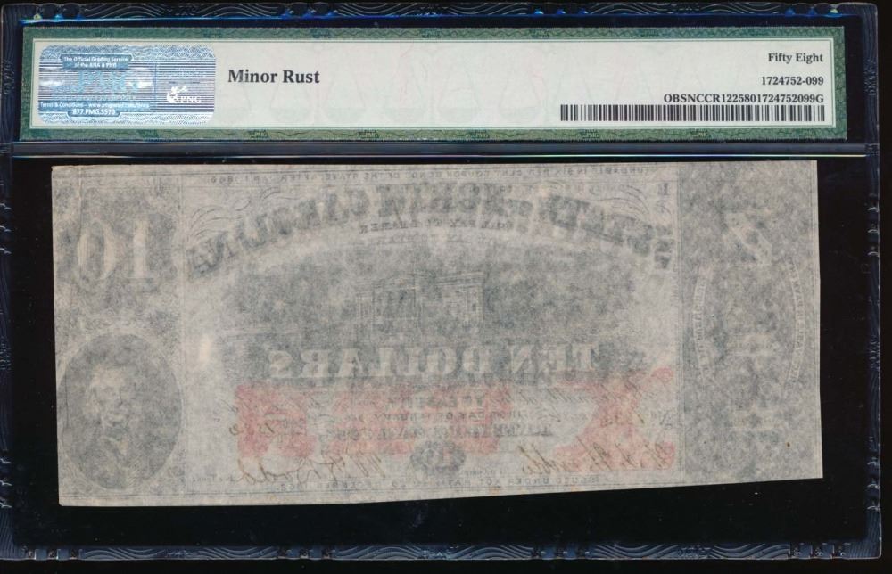 One 1863 $10 State of North Carolina Obsolete Note PMG 58.