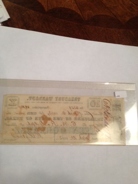 1863 $10 TREASURY WARRANT CIVIL SERVICE