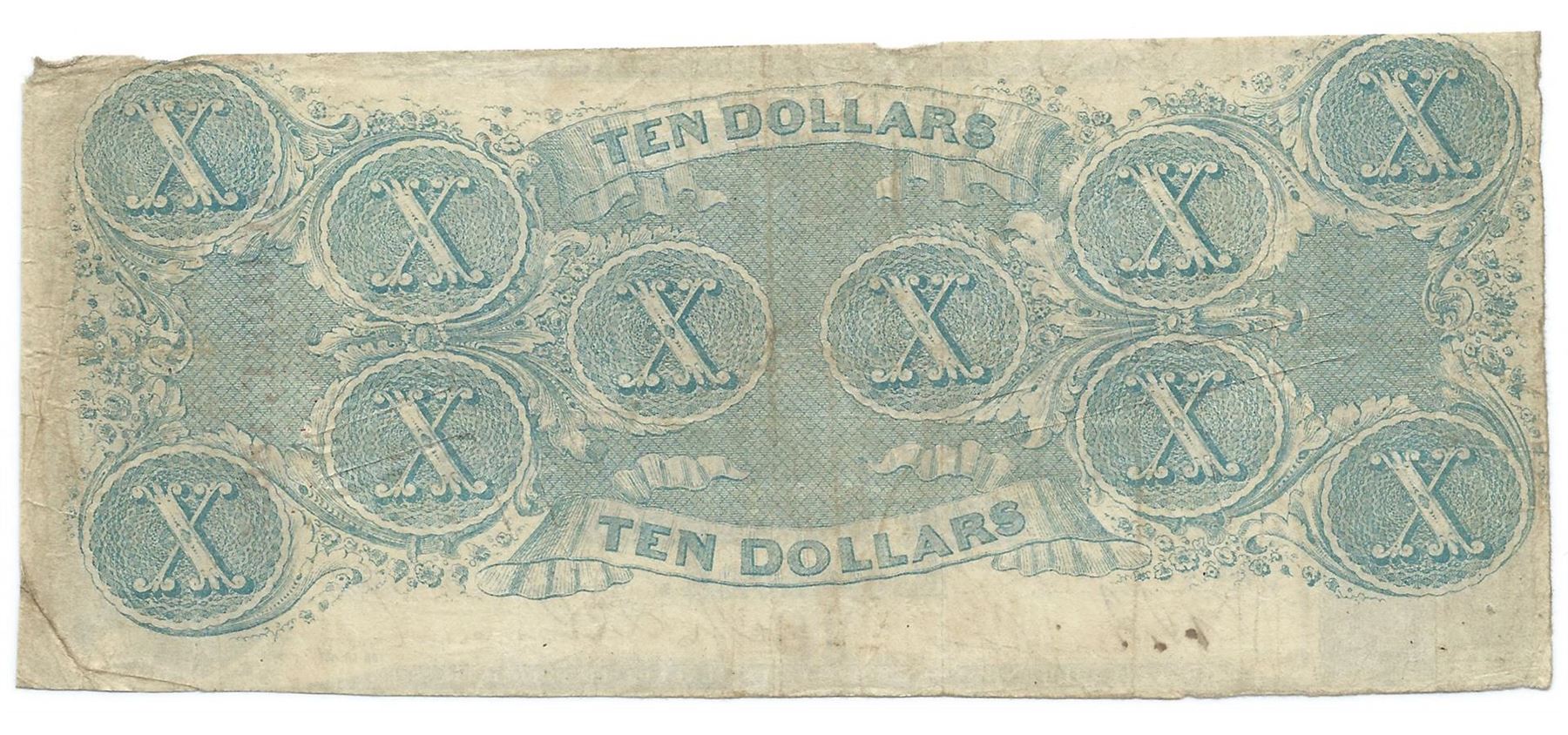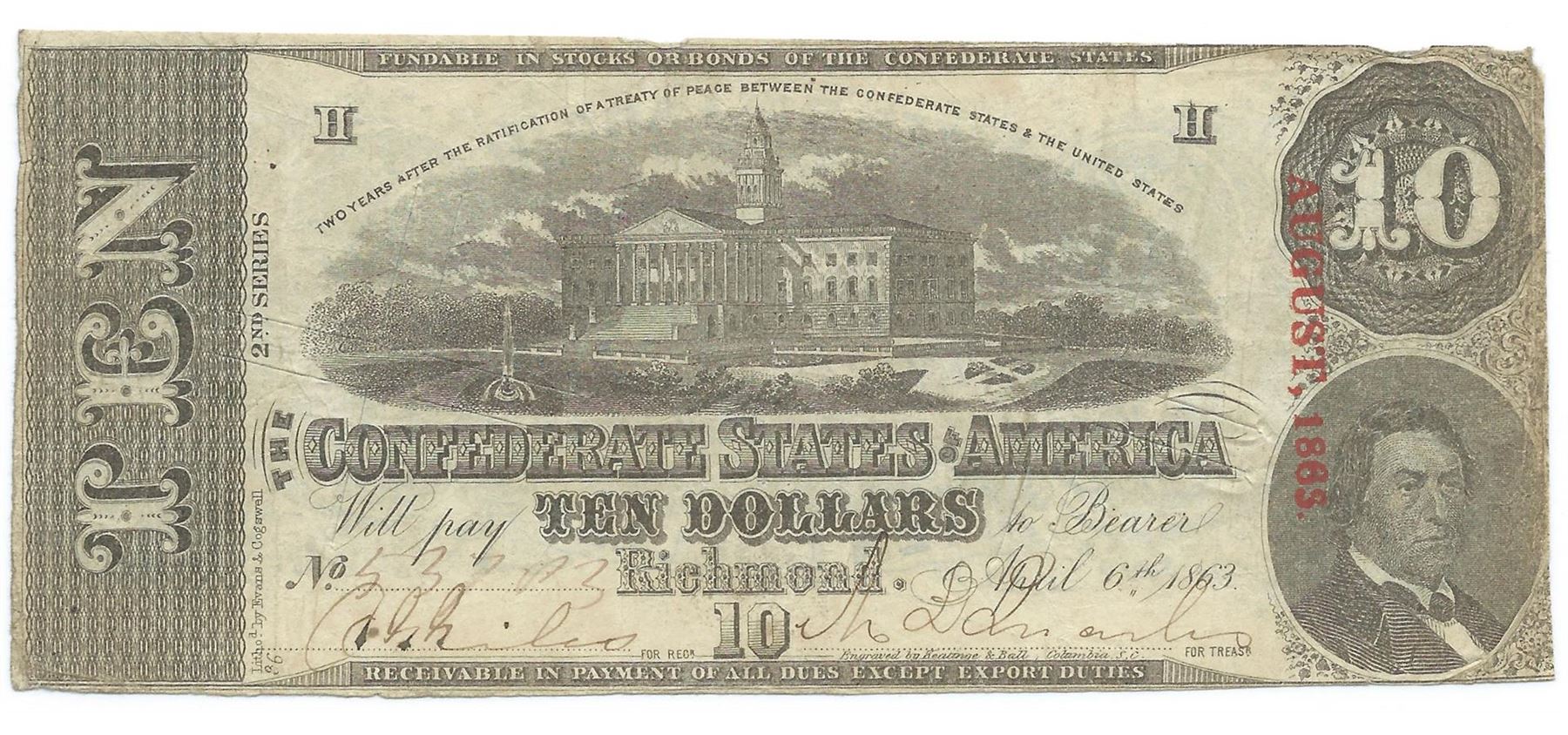 One 1863 $10 The Confederate States of America Note T-59 CC