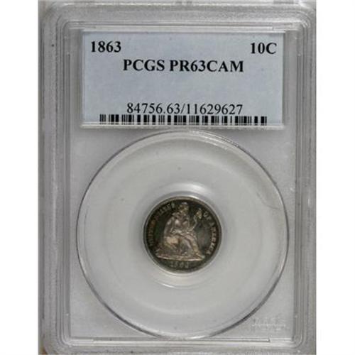 <B>1863 10C PR63 Cameo PCGS.</B></I> PCGS Population (4/15). NGC Census: (2/18). (#84756)<BR><BR><b>Shipping:</b> Coins & Currency (<a target="_blank" href="http://www.heritageauctions.com/common/shipping.php">view shipping information</a>)