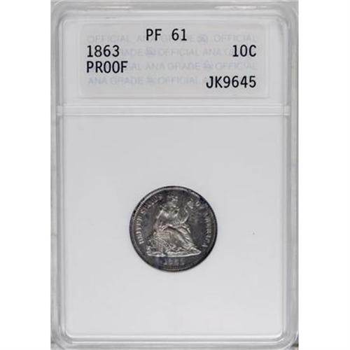 <B>1863 10C PR61 ANACS.</B></I> . NGC Census: (2/107). PCGS Population (4/101). Mintage: 460. (#4756)<BR><BR><B>Coin Engraver:</B> Christian Gobrecht<BR><BR><b>Shipping:</b> Coins & Currency (<a target="_blank" href="http://www.heritageauctions.com/common/shipping.php">view shipping information</a>)