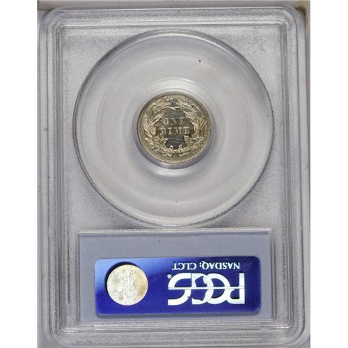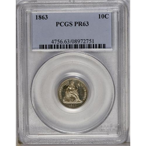 <B>1863<10C> PR63 PCGS.</B></I> Lovely cameo contrast is evident on both sides of this contact-free, essentially untoned specimen. Wispy hairlines in the obverse and reverse fields limit the grade. Population: 37 in 63, 42 finer (6/06).