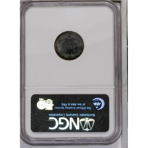 1863 10C PR65 NGC. Iridescent cobalt-blue, lavender, a