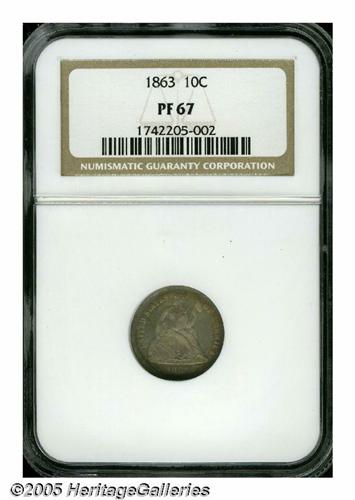 1863 10C PR67 NGC. One of only 460 proofs, the 18