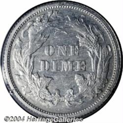 <table><tr><td><table><tr><td>1863 10C Ten Cents, Judd-334, Pollock-406, High R.7, PR63 PCGS. Regular die trials striking of the Seated Liberty dime for 1863. Struck in aluminum with a reeded edge. As pointed out in the USPatterns.com website, although these pieces are described as regular dies trial strikings in the literature, they are actually backdated fantasy pieces made to complete off-metal sets of this year which included the quarter, half, and dollar with the motto IN GOD WE TRUST as used on regular coinage from 1866 to 1891. They were actually made sometime between 1869 and 1875. This piece was made from the 1869 hub the first S in STATES broken and from an 1869 reverse hub with the die scratch angling upwards from the right wreath into the center. Softly struck, there is a bit of oxidation present and a planchet flaw to the left of the date, but otherwise the surfaces are brilliant and show moderate reflectivity. <BR><BR><B>Important notice:</B> Heritage usually auctions material at the rate of 200-250 lots per hour. On some occasions eBay Live bid software or the Internet may not be able to keep up with the pace of the auction. We recommend placing a realistic absentee bid now as insurance to avoid disappointment. Occasionally the auctioneer may eliminate or reject an eBay Live bid, and the auctioneer may also reopen a lot after the close of the eBay live bidding (usually because we missed an audience bid), and may reject your bid even if it shows you as the winning bidder. By bidding via eBay Live, you agree that Heritage may award the lot to another bidder at its sole discretion under the circumstances described above or any other reasonable circumstances. Since eBay bids are not shown to us until we open the lot on the floor, we treat those bids just like floor bids. In most cases the floor responds before the eBay bid is presented to us, due to Internet lag time, so for consistency we have made it a policy that floor bids are always considered first over tie eBay live bids. Also please note that all Heritage lots purchased through eBay Live carry a 20% Buyer's Premium. Please make sure you read the Terms and Conditions before you bid. <BR><BR><B>IMPORTANT ANNOUNCEMENT ABOUT RESERVES:</B> Heritage now divulges all reserves on its web site 7 days before every auction. If you want to know whether the reserve on this lot has been met, and if not, what the reserve amount is, please visit this lot page on the HeritageCoin.com web site, or email: bid@HeritageGalleries.com </span></font></td></tr></table></td></tr></table>