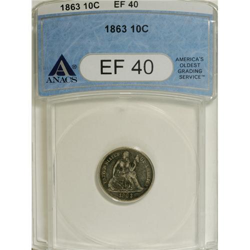 1863 10C XF40 ANACS. Ice-blue and autumn-brown blanket