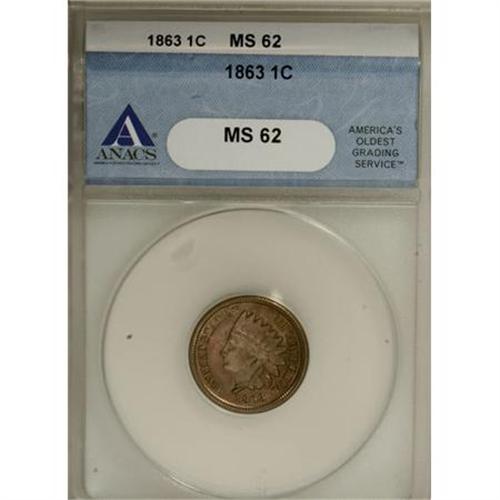 <B>1863 1C MS62 ANACS.</B></I> . NGC Census: (227/1096). PCGS Population (316/1320). Mintage: 49,840,000. Numismedia Wsl. Price for NGC/PCGS coin in MS62: $115. (#2067)<BR><BR><B>Coin Engraver:</B> James B. Longacre<BR><BR><b>Shipping:</b> Coins & Currency (<a target="_blank" href="http://www.heritageauctions.com/common/shipping.php">view shipping information</a>)