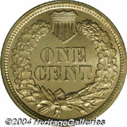 <B>1863<1C> MS66 PCGS.</B></I> The abundantly minted (50 million pieces) 1863 Cent is more often seen in high circulated grades and Uncirculated condition than other dates in the Copper-Nickel series. As a result, it is often used for type purposes. However, many of the coins were carelessly produced and weak strikes are more often seen than not. This piece's only flaw is that the tips of the feathers in the headdress are not quite full. Otherwise, the surfaces are bright and light in color with attractive accents of lilac and rose on each side. Population: 24 in 66, 0 finer (9/04). <BR><BR><B>Important notice:</B> Heritage usually auctions material at the rate of 200-250 lots per hour. On some occasions eBay Live bid software or the Internet may not be able to keep up with the pace of the auction. We recommend placing a realistic absentee bid now as insurance to avoid disappointment. Occasionally the auctioneer may eliminate or reject an eBay Live bid, and the auctioneer may also reopen a lot after the close of the eBay live bidding (usually because we missed an audience bid), and may reject your bid even if it shows you as the winning bidder. By bidding via eBay Live, you agree that Heritage may award the lot to another bidder at its sole discretion under the circumstances described above or any other reasonable circumstances. Since eBay bids are not shown to us until we open the lot on the floor, we treat those bids just like floor bids. In most cases the floor responds before the eBay bid is presented to us, due to Internet lag time, so for consistency we have made it a policy that floor bids are always considered first over tie eBay live bids. Also please note that all Heritage lots purchased through eBay Live carry a 20% Buyer's Premium. Please make sure you read the Terms and Conditions before you bid.