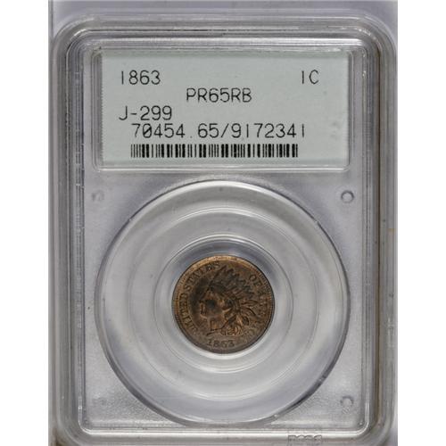 1863 1C One Cent, Judd-299, Pollock-359, R.3, PR65 Red 1863