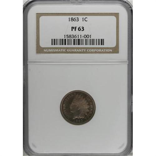<B>1863 1C PR63 NGC.</B></I> A needle-sharp cent with moderately mirrored fields and consistent rose-gold toning. The reverse is well preserved, while the left obverse field has a few faint hairlines.<BR><BR><B>Coin Engraver:</B> James B. Longacre<BR><BR><b>Shipping:</b> Coins & Currency (<a target="_blank" href="http://www.heritageauctions.com/common/shipping.php">view shipping information</a>)