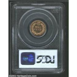 1863 1C PR65 Cameo PCGS. The 1863 is a very scarce copper-nickel proof and cameo examples are actually very rare, even though we have two pieces in this sale. The fields show unfathomable depth of mirrored reflectivity and the surfaces appear flawless except for a couple of inconsequential specks of carbon. Light rose colored patina lightly covers each side. Population: 4 in 65, 2 finer (10/02). Important notice: We expect to be auctioning lots at the rate of 200-250 per hour. Sometimes eBay Premier live bid software cannot keep up with that pace, so we strongly recommend that you place a realistic proxy bid now as insurance to avoid disappointment. Also please note that all Heritage/CAA lots purchased through eBay Premier carry a 20% Buyer's Premium. Please make sure you read the Terms and Conditions.