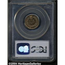 <B>1863<1C> PR65 Cameo PCGS.</B></I> Out of the 460 proofs struck in 1863, it is reliably estimated that today no more than 150 pieces have survived in all grades. This piece is undoubtedly one of the finest known. The surfaces overall are bright and very lightly toned in subtle reddish-rose hues. The fields are deeply mirrored and the devices are heavily frosted which gives the coin a noticeable cameo appearance on each side. Population: 7 in 65 Cameo, 5 finer (3/04). <BR><BR><B>Important notice:</B> Heritage usually auctions material at the rate of 200-250 lots per hour. On some occasions eBay Live bid software or the Internet may not be able to keep up with the pace of the auction. We recommend placing a realistic absentee bid now as insurance to avoid disappointment. Occasionally the auctioneer may eliminate or reject an eBay Live bid, and the auctioneer may also reopen a lot after the close of the eBay live bidding (usually because we missed an audience bid), and may reject your bid even if it shows you as the winning bidder. By bidding via eBay Live, you agree that Heritage may award the lot to another bidder at its sole discretion under the circumstances described above or any other reasonable circumstances. Since eBay bids are not shown to us until we open the lot on the floor, we treat those bids just like floor bids. In most cases the floor responds before the eBay bid is presented to us, due to Internet lag time, so for consistency we have made it a policy that floor bids are always considered first over tie eBay live bids. Also please note that all Heritage lots purchased through eBay Live carry a 20% Buyer's Premium. Please make sure you read the Terms and Conditions before you bid.