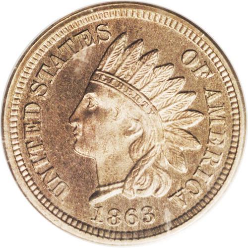 1863 1C PR65 PCGS. This brilliant, crisply struck Gem