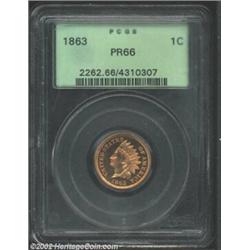 1863 1C PR66 PCGS. From an original mintage of approximately 460 pieces comes this pleasingly reflec