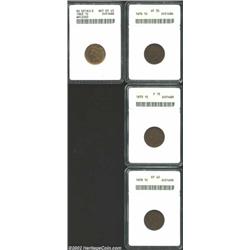 1863 1C--Whizzed--ANACS, AU Details, Net XF40, no apparent rub but whizzed throughout, the lower reverse has a wire rim; 1870 VF35 ANACS, LIBERTY is clear but the diamonds are worn, the reverse has traces of verdigris; 1872 Fine 15 ANACS, LIBERTY is legible but has a couple of faint letters, problem-free for the grade; and an 1878 XF40 ANACS, a few minor contact marks, dark tan-brown patina. 4 coins Important notice: We expect to be auctioning lots at the rate of 200-250 per hour. Sometimes eBay Premier live bid software cannot keep up with that pace, so we strongly recommend that you place a realistic proxy bid now as insurance to avoid disappointment. Also please note that all Heritage/CAA lots purchased through eBay Premier carry a 20% Buyer's Premium. Please make sure you read the Terms and Conditions.