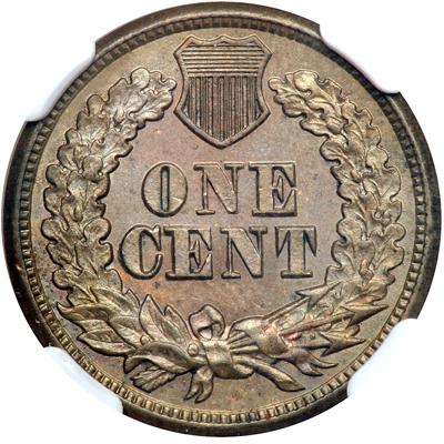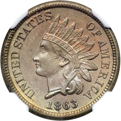 1863 1¢ Indian. NGC graded MS-64. Nicely toned example of this Civil War period copper-nickel Type.