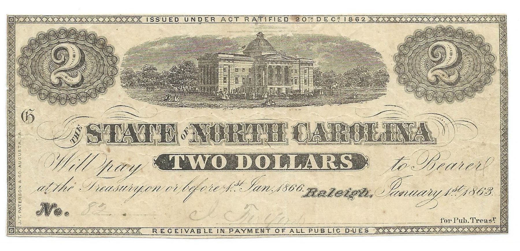 One 1863 $2 Confederate States of America
