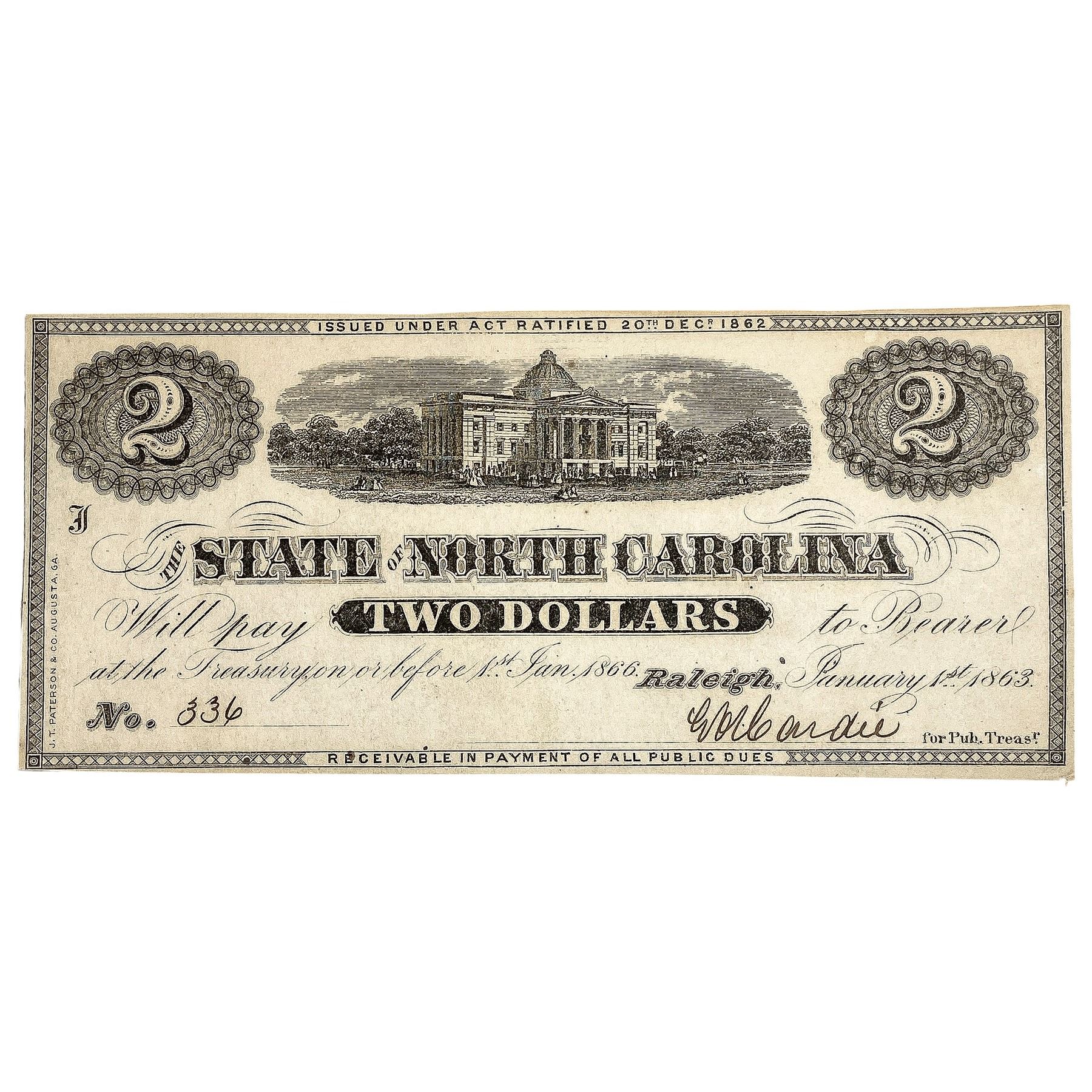 1863 $2 North Carolina Note-Raleigh