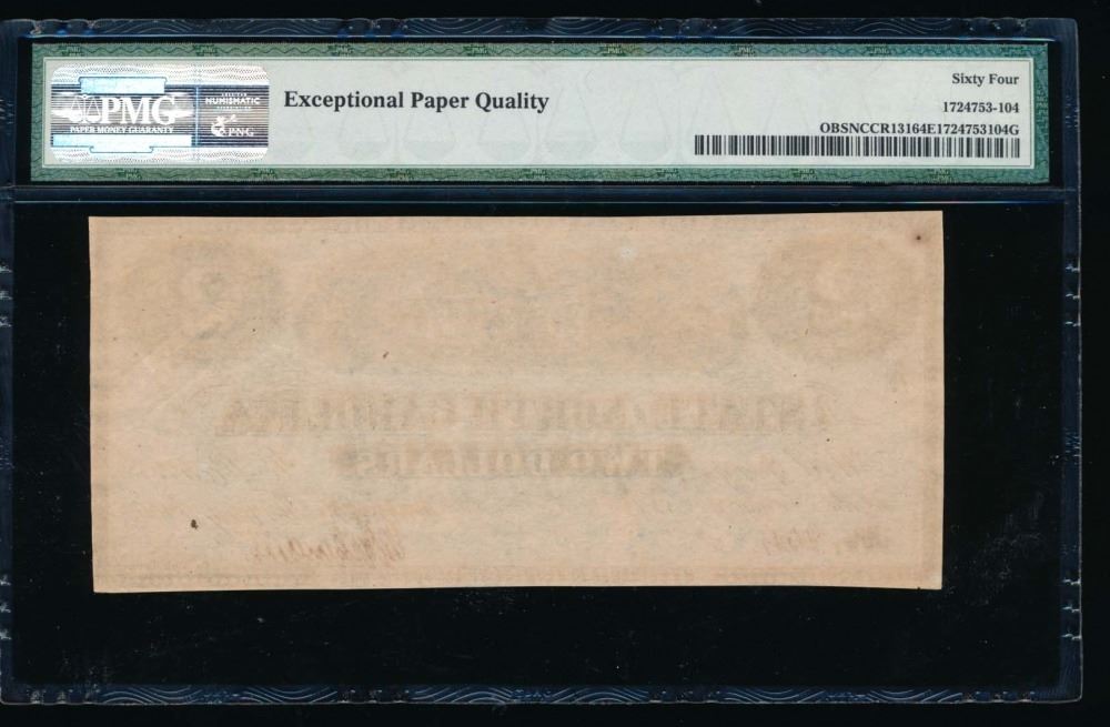 One 1863 $2 North Carolina Obsolete Note PMG 64EPQ.